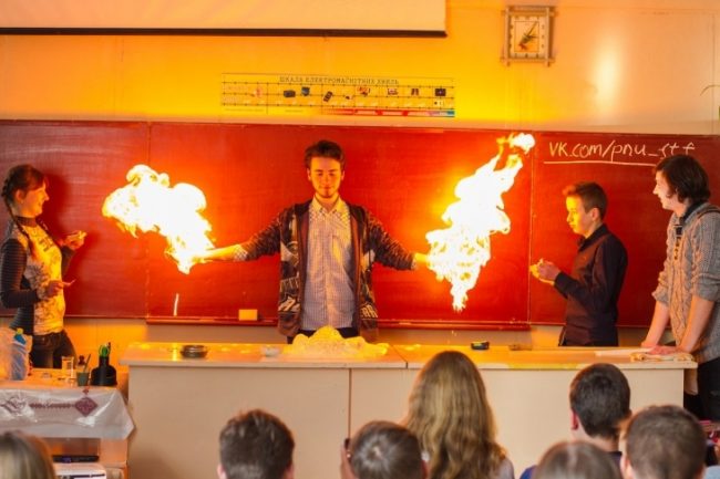 На експозиціях Фізико-технічного факультету демонструвалися основні напрямки наукової та навчальної діяльності, зокрема, такі фізичні експерименти як «Маятник Енштейна», двохосьовий та одноосьовий гіроскопи, експеримент з точкою Кюрі, свинцеві циліндри. Аспіранти факультету провели ефектні демонстрації з рідким азотом, магнієвим спалахом, бездимним порохом Читати далі