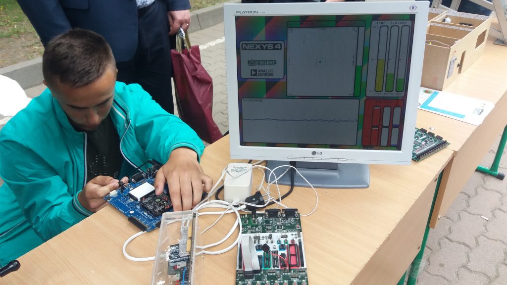 Поряд з ними була демонстрація прикладних задач на програмованих логічних інтегральних мікросхемах (ПЛІС) фірми Xilinx і програмованих систем на кристалі (ПСНК) фірми Cypress.