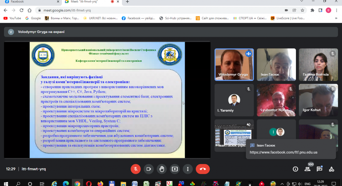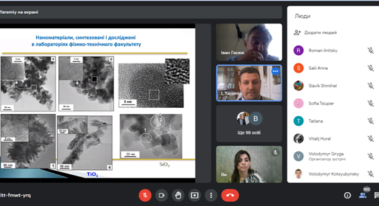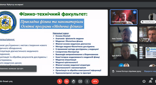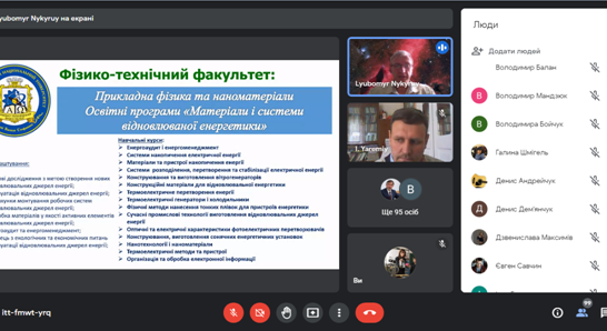 Декан та викладачі також відповіли на запитання учнів та вчителів, які були надіслані в чаті та надали контакти для подальшого спілкування. По завершенні зустрічі декан та науково-педагогічні працівники кафедр фізико-технічного факультету подякували всім учасникам та запросили їх відвідати наший Університет на наступному тижні в режимі офлайн.