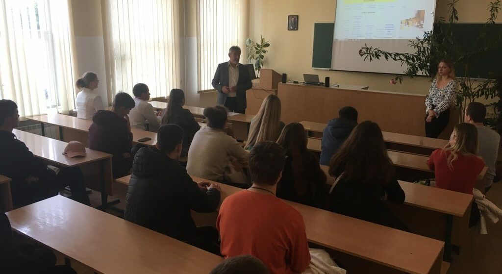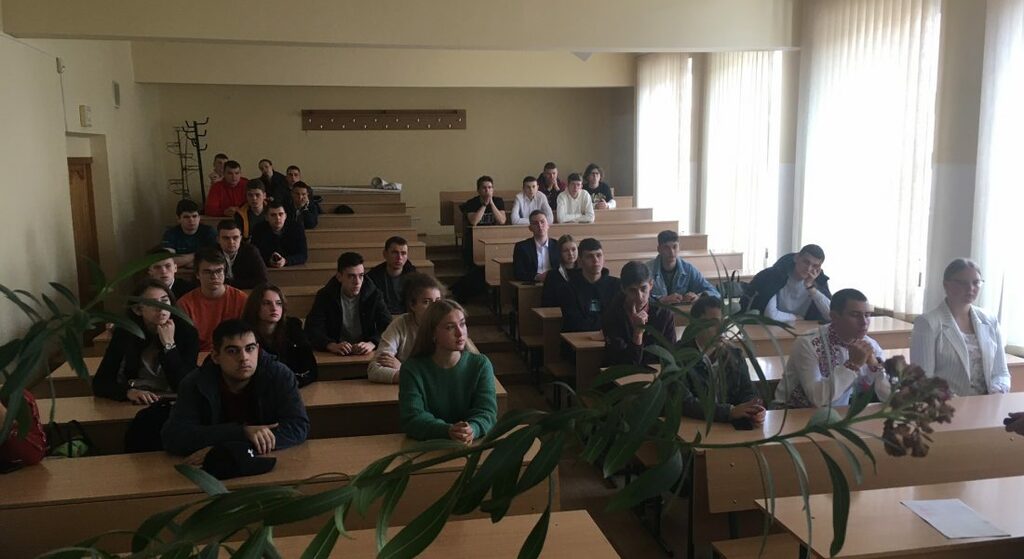 Студенти першого курсу факультету взяли участь як очно, у актовій залі, так і дистанційно, через пряму трансляцію в авдиторії факультету та у Facebook.