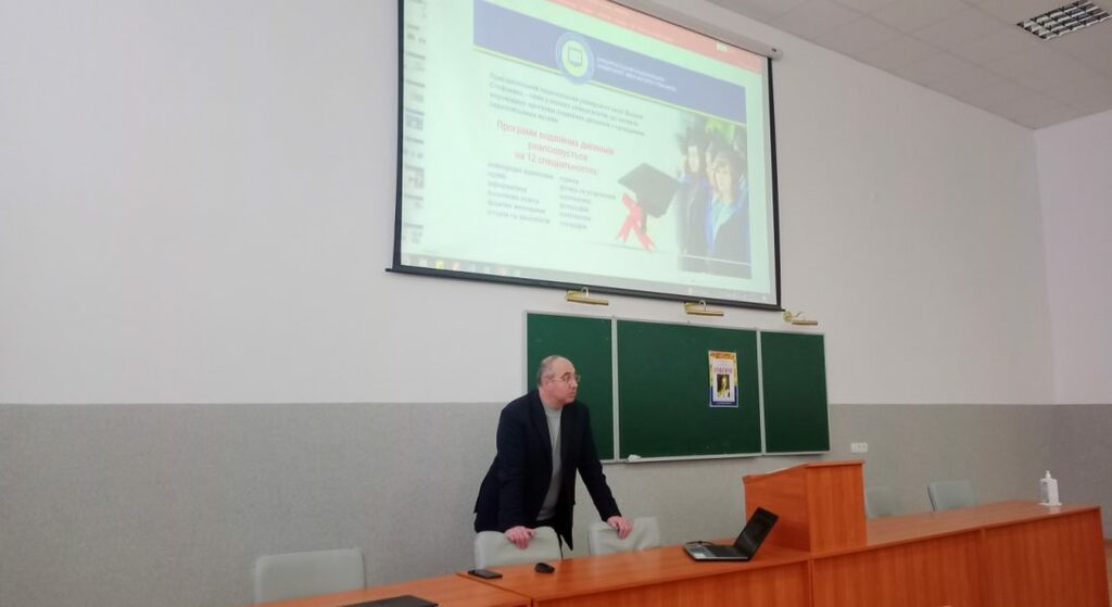 На початку зустрічі з презентаційною доповіддю виступив відповідальний секретар Приймальної комісії Прикарпатського національного університету імені Василя Стефаника, проректор з науково-педагогічної роботи Едуард Йосипович Лапковський. В своїй доповіді Едуард Йосипович представив: рейтингові показники, міжнародну і грантову діяльність Університету, унікальні стипендіальні можливості студентів, структуру основних підрозділів та освітні програми за якими здійснюється підготовка здобувачів вищої освіти.