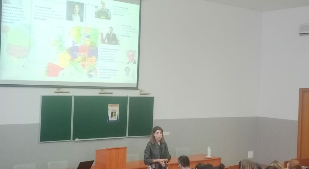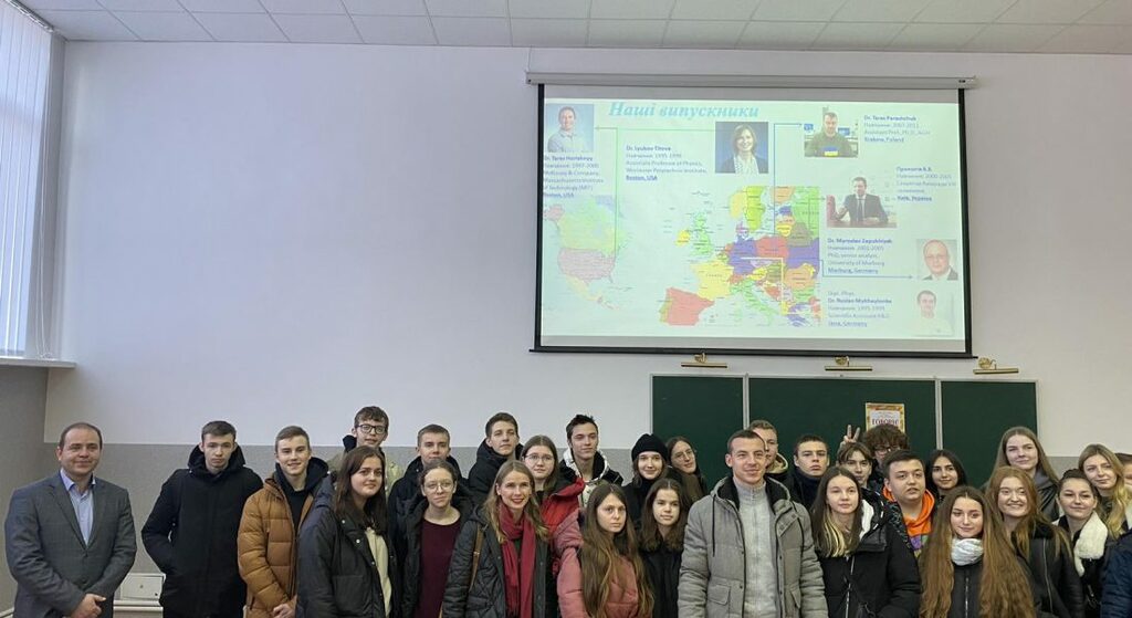 Завідувач кафедри фізики і хімії твердого тіла, професор Никируй Л.І., розповів учасникам заходу про відомих випускників фізико-технічного факультету, які працюють в провідних університетах світу, міжнародну грантову діяльність та міжнародну співпрацю із закладами вищої освіти США та Європи.