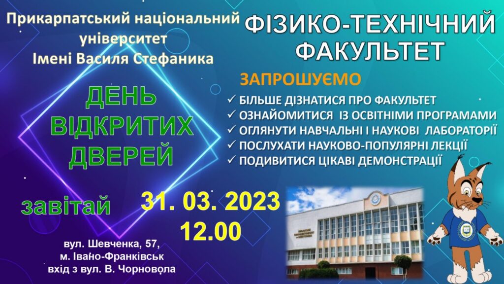 08 березня 2023 року науково-педагогічні працівники Фізико-технічного факультету, в рамках проєкту ”Університет для учнів” який традиційно організовує Прикарпатський національний університет імені Василя Стефаника, провели виїзну профорієнтаційну зустріч в Ланчинський ліцей імені Юрія Шкрумеляка. В заході взяли участь учні 9-11 класів Читати далі