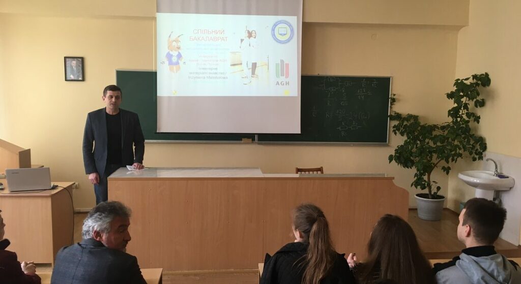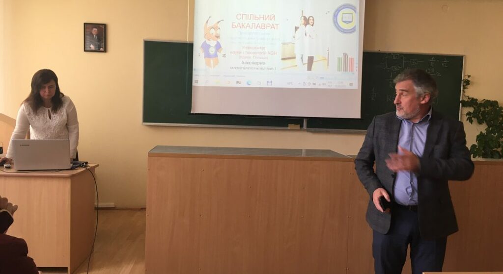Завідувач кафедри матеріалознавства та новітніх технологій, д.ф-м.н., професор Коцюбинський Володимир Олегович представив учасникам заходу нову освітню програму (ОП) бакалаврського рівня – Інженерне матеріалознавство. Спільний бакалаврат для реалізації освітньої програми ”Інженерне матеріалознавство” започаткований між Прикарпатським національним університетом імені Василя Стефаника та Університетом науки і технологій AGH (Краків, Республіка Польща). При навчанні на даній ОП здобувачі вищої освіти будуть поєднувати навчання в Україні та Польщі. Навчання студентів в ПНУ ім. В. Стефаника за даною ОП буде проходити в 1-у, 2-у, 5-у та 8-у семестрах, а навчання в Університеті науки і технологій (AGH) буде відбуватися в 3-у, 4-у, 6-у та 7-у семестрах на протязі 4-х навчальних років. Володимир Олегович також навів переваги навчання на даній ОП – отримання Європейського диплому інженера, супровід навчання в Україні, без оплати навчання в Польщі, допомога в оформленні документів для перетину кордону, вивчення обов’язкового поглибленого курсу англійської і польської мови, участь в програмах академічної мобільності, можливості працевлаштування на високооплачувану роботу, тощо.